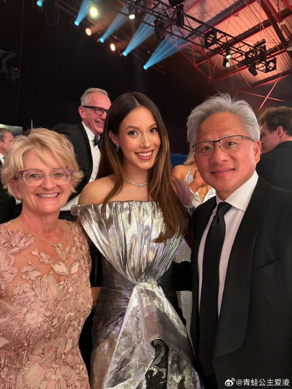 谷爱凌受邀出席今年的颁奖典礼,她身着郭培2026春夏定制礼服亮相,优雅大气,并且与黄仁勋夫妇一起合影。而2024年,她曾在该颁奖典礼上与埃隆-马斯克合影。